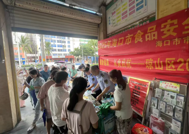 为进一步提拔食物平安认识,海口市市场监视办理局琼山联袂区农业农村局、区教育局、琼山区卫健委、琼山区健康办事核心、琼山区健教所、滨江街道办,环绕“尚德守法 共享食安”从题,开展食物平安宣传周勾当。